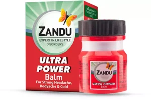 Zandu Balm Ultra Power Red 8ml – Made in India Get fast and effective relief from severe pain and aches with Zandu Balm Ultra Power Red, a trusted Ayurvedic remedy. Key Benefits: Effective Pain Relief: Helps relieve strong headaches, body aches, neck & shoulder pain, knee pain, backache, muscle pain, and joint pain. Versatile Use: Suitable for sprains, inflammation, cold, and general body discomfort. Safe & Tested: Dermatologically tested Ayurvedic proprietary medicine, for external use only. Trusted Brand: Made in India, a No.1 choice for headache, body ache, and cold relief.